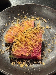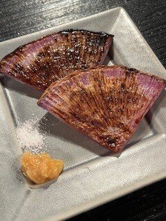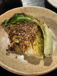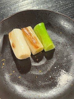 新鮮な野菜を炭火で焼いて、ひと手間加えるコースを頂きました。