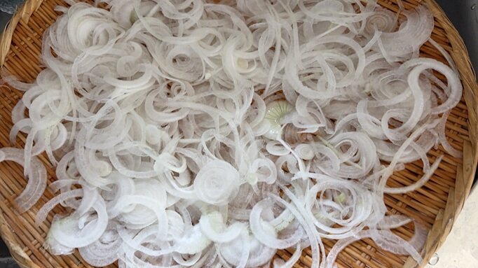 早いもので、桜も終わり、藤が見頃を迎えてきていますね。昨日は、友人の畑で取れた新タマネギをいただきましたので、早速スライスしてみました。写真だけ見ても涙出そう(笑)。